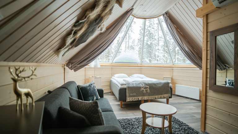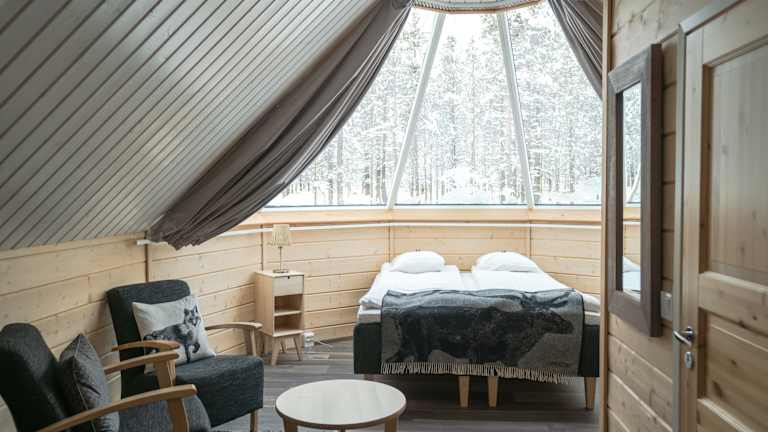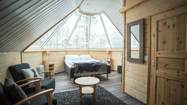 Das Northern Lights Village in Saariselkä bietet seinen Gästen einen einzigartigen Aufenthalt inmitten der Natur. Die glasüberdachten Hütten ermöglichen es den Gästen, die atemberaubenden Nordlichter direkt von ihrer Unterkunft aus zu beobachten. Das Hotel verfügt über ein gemütliches Restaurant, das sich auf lokale Speisen spezialisiert hat, und eine Bar, in der man den Tag ausklingen lassen kann. Darüber hinaus bietet das Hotel eine Vielzahl von Aktivitäten, darunter Schneemobilfahren, Husky-Safaris und Nordlicht-Entdeckungstouren. Ein Highlight ist die eigene Rentier-Koppel, wo die Gäste die Rentiere hautnah erleben können.