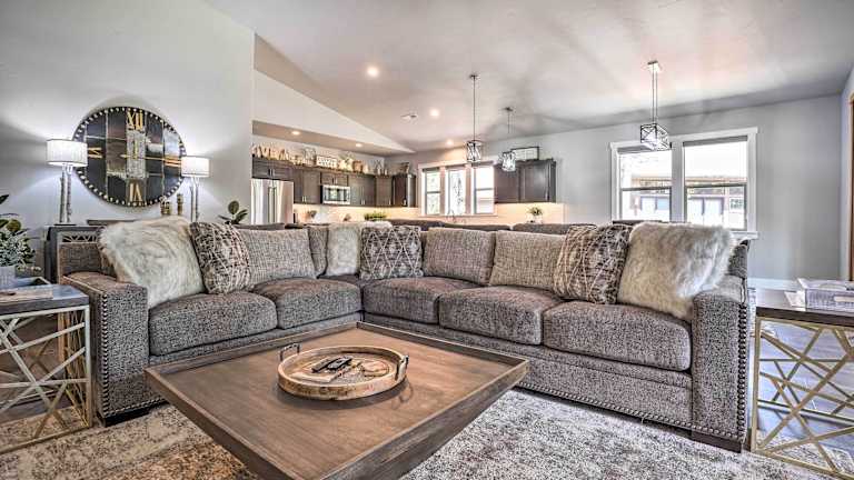 Das Northwest Sunriver Getaway with Community Amenities! liegt in der Region Oregon, in der charmanten Stadt Sunriver. Die Unterkunft bietet einen herrlichen Blick auf den Fluss und ist nur 29 km vom Drake Park entfernt. In der Umgebung gibt es viele Parks wie den Hollinshead Park und den Ponderosa Park, die sich perfekt für Spaziergänge und Outdoor-Aktivitäten eignen. Der Flughafen Redmond Municipal Airport ist nur 53 km entfernt, was die An- und Abreise sehr bequem macht.