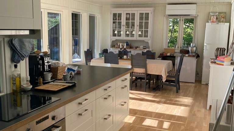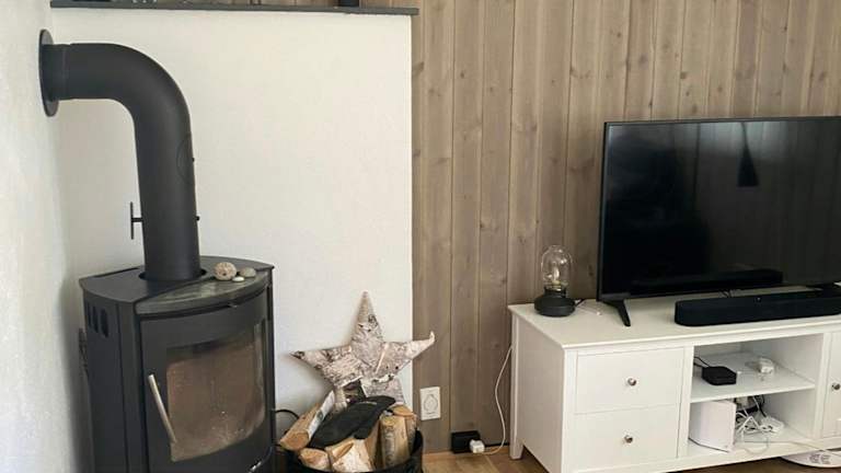 Das Ferienhaus ist ausgestattet mit einer modernen Küche, die einen Kühlschrank und einen Geschirrspüler umfasst. Die Unterkunft bietet Platz für mehrere Gäste und verfügt über eine beruhigende Terrasse.