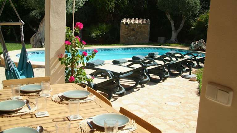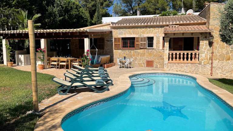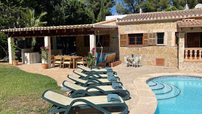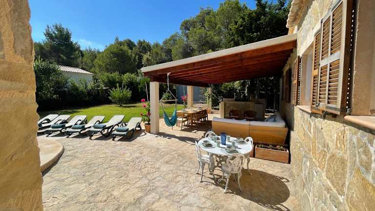 Die Villa umfasst 4 Schlafzimmer, ein Wohnzimmer, eine voll ausgestattete Küche mit Kühlschrank und Kaffeemaschine sowie 3 Badezimmer mit Bidet und Dusche. Zu den Annehmlichkeiten gehören Klimaanlage, kostenloses WLAN und Handtücher sowie Bettwäsche. Ein Garten und ein Grill stehen ebenfalls zur Verfügung.