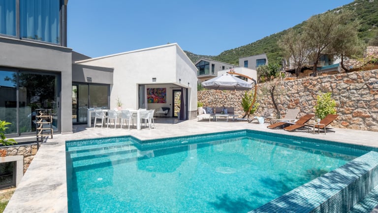 Der Notos Club in Kas bietet 14 Premium Villen mit einem Openair-Restaurant, einem Tennisplatz und einem Pool inmitten der Natur. Genießen Sie den atemberaubenden Meerblick von Ihrer Terrasse aus und entspannen Sie in den gut ausgestatteten Unterkünften mit kostenfreiem WLAN. Das Hotel bietet auch einen Kinderspielplatz und ist günstig gelegen, um die umliegenden Sehenswürdigkeiten wie den Lykischen Felsenfriedhof und die versunkene Stadt Kekova zu erkunden. Der Flughafen Kastelorizo ist nur 22 km entfernt und ein kostenpflichtiger Flughafentransfer wird angeboten.