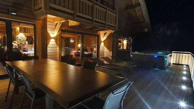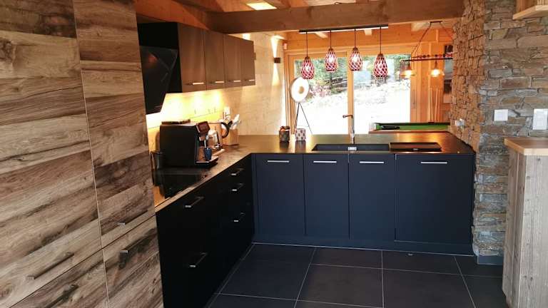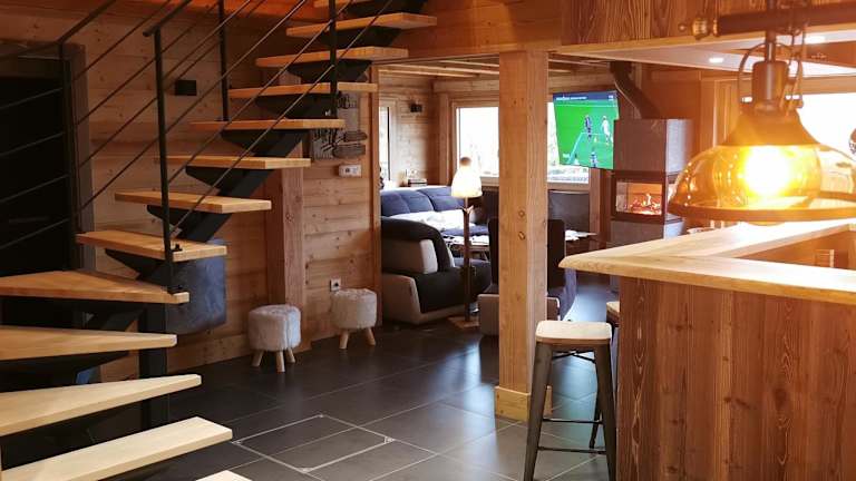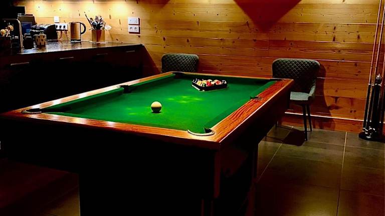Im Nouveau Chalet M.META 12 pers sauna, jacuzzi, billard können Sie Ihre eigenen Mahlzeiten zubereiten und im gemütlichen Essbereich des Chalets genießen. Alternativ können Sie in der Gemeinschaftslounge entspannen oder an der Bar einen Drink genießen.