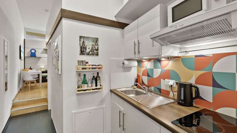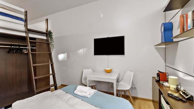Die Ferienwohnung besteht aus einem Schlafzimmer und einem Wohnzimmer sowie einer voll ausgestatteten Küche, die mit einem Kühlschrank und einem Geschirrspüler ausgestattet ist. Handtücher und Bettwäsche werden bereitgestellt. Zu den Annehmlichkeiten zählen kostenloses WLAN und ein TV. Zu den weiteren Einrichtungen gehören ein Aufzug, Heizung und ein Erste-Hilfe-Kasten.