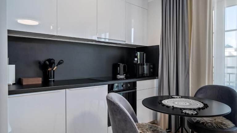 Die Unterkunft verfügt über eine voll ausgestattete Küchenzeile mit einem Kühlschrank und einer Kaffeemaschine zur Selbstverpflegung.
