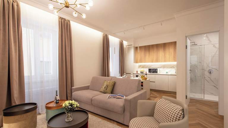 Die Wohneinheiten umfassen eine voll ausgestattete Küche mit Kühlschrank, Geschirrspüler, Ofen, Mikrowelle sowie eine Kaffeemaschine und einen Wasserkocher. Außerdem sind ein Essbereich, ein Flachbild-TV mit Satellitenkanälen und ein eigenes Badezimmer mit Dusche und Haartrockner vorhanden. Einige Einheiten sind als Familienzimmer verfügbar.