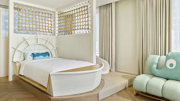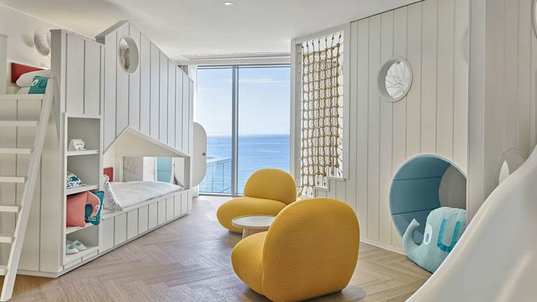 Die Zimmer bieten ein angenehmes Raumklima durch individuell steuerbare Klimaanlagen und Heizungen. Die meisten Zimmer verfügen über einen Blick auf das Meer und sind ausgestattet mit einem Doppelbett oder einem Kingsize-Bett. Zu den Annehmlichkeiten gehören Safe, Minibar, Kühlschrank, Tee-/Kaffeemaschine, Bügelset sowie ein TV-Gerät und WLAN. Die Badezimmer bieten sowohl Dusche als auch Badewanne, Haartrockner, Bademäntel und Kosmetikartikel.