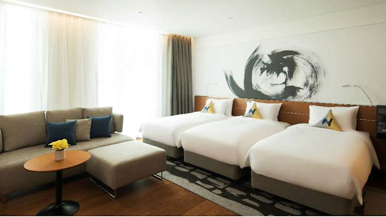 Die Zimmer im Novotel Ambassador Seoul Dongdaemun sind modern und umfassend ausgestattet. Sie verfügen über einen Schreibtisch, einen Flachbild-TV, ein eigenes Bad sowie einen Wasserkocher. In ausgewählten Zimmern steht zusätzlich eine Küche mit einer Mikrowelle zur Verfügung. Jedes Zimmer hat einen Kleiderschrank und bietet einen Blick auf die Stadt. Der Klimaanlage ist individuell regelbar und die Zimmer enthalten zudem einen Safe, ein Bügeleisen, einen Kühlschrank, die Nutzung von WLAN ist gegen Gebühr möglich.