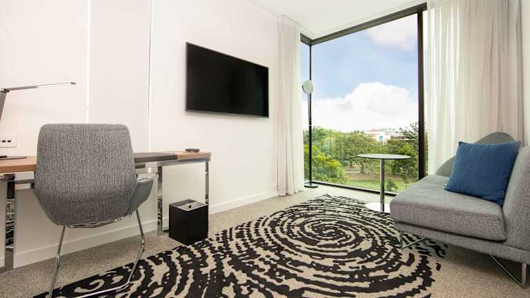 Die Zimmer im Novotel Brisbane South Bank sind komfortabel und modern eingerichtet. Sie verfügen über eine Klimaanlage, einen Schreibtisch, einen Wasserkocher, einen Safe, einen Flachbild-TV und ein eigenes Badezimmer mit Dusche. Einige Zimmer verfügen auch über einen Sitzbereich.