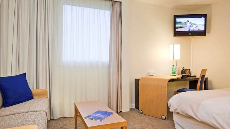 Das Novotel Nantes Centre Bord de Loire befindet sich in idealer Lage am Ufer der Loire, im Herzen der Île de Nantes und nur wenige Minuten mit der Straßenbahn vom Stadtzentrum von Nantes entfernt. In der Umgebung finden Sie Sehenswürdigkeiten wie das Château Anne de Bretagne, die Kathedrale von Nantes, die Passage Pommeraye, das Theater Graslin und den Place Royale. Der Flughafen von Nantes ist etwa 10 km entfernt.