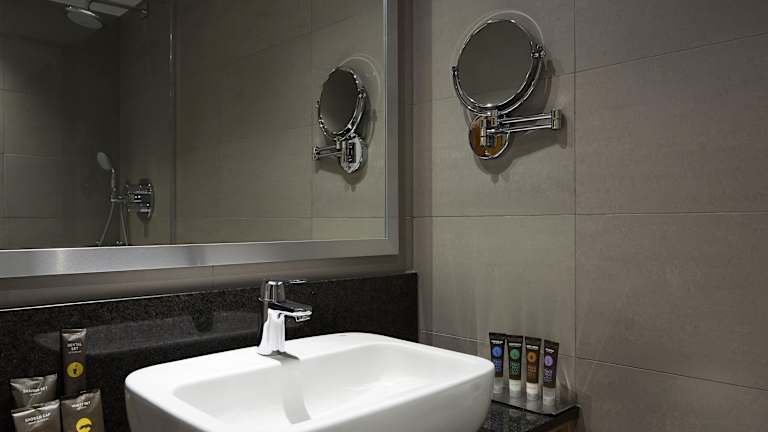 Die Zimmer sind mit Teppichböden ausgelegt und bieten Klimaanlage, Heizung sowie ein Doppelbett. Zur Ausstattung gehören ein Safe, eine Minibar, ein Schreibtisch und eine Tee-/Kaffeemaschine. Die Gäste finden zudem einen 55-Zoll-LCD-TV und kostenloses WLAN vor. Die Badezimmer sind mit Dusche und Badewanne ausgestattet und bieten kostenfreie Pflegeprodukte.