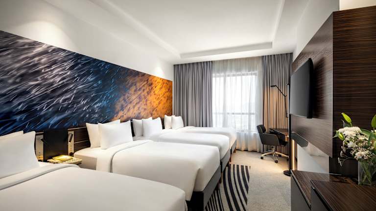 Die Zimmer sind klimatisiert und mit Teppichböden ausgestattet. Sie bieten entweder ein Doppelbett, ein Kingsize-Bett oder ein Sofabett. Zu den Annehmlichkeiten zählen ein Safe, eine Minibar, ein Schreibtisch, eine Tee-/Kaffeemaschine, ein Telefon und ein Flachbild-TV mit Pay-per-View-Option. Jedes Zimmer verfügt über ein eigenes Badezimmer mit Dusche, Haartrockner und Kosmetikartikeln. Barrierefreie Badezimmer sind ebenfalls verfügbar. Die Unterkunft bietet Familien- und Nichtraucherzimmer.