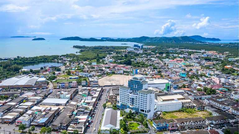 Das Novotel Phuket City Phokeethra - SHA Extra Plus liegt gegenüber dem zentralen Busbahnhof von Phuket und ist somit ein idealer Ausgangspunkt, um die Insel zu erkunden. Die Altstadt von Phuket ist etwa 1 km entfernt und der Strand erreichen Sie in ca. 20 Fahrminuten. In der Nähe des Hotels finden Sie Geschäfte und Sehenswürdigkeiten wie den Wat Chalong, den Khatu-Wasserfall und Laem Phromthep. Der internationale Flughafen Phuket ist etwa 35 km entfernt.