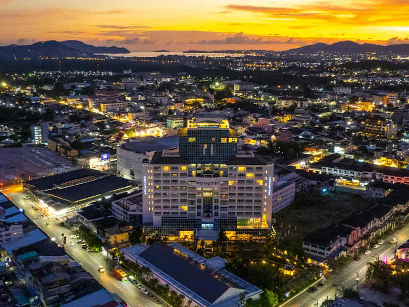 Das Novotel Phuket City Phokeethra - SHA Extra Plus ist ein stilvolles Hotel im Herzen von Phuket Town, das mit einem Außenpool und modernen Zimmern und Suiten überzeugt. Genießen Sie die Annehmlichkeiten wie Flachbild-Sat-TV, Minibar und kostenfreies WLAN. Das Restaurant bietet eine abwechslungsreiche Auswahl an Gerichten und die Sky Lounge beeindruckt mit einem Panoramablick. Das Hotel liegt in der Nähe der Altstadt von Phuket und des Einkaufsviertels, und der Rassada Pier ist ebenfalls gut erreichbar.