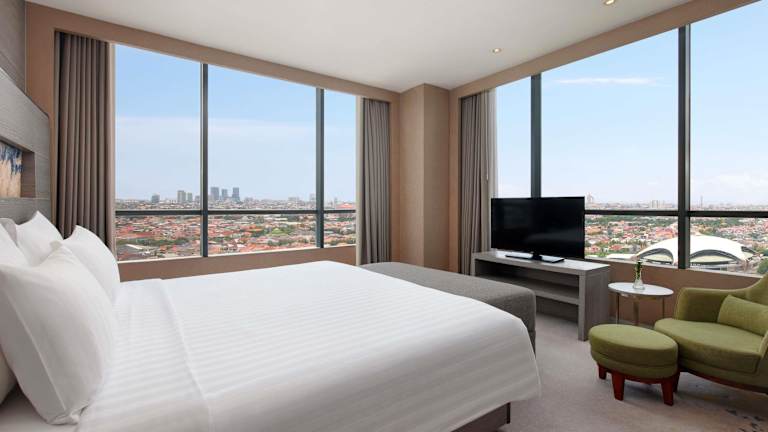 Das Novotel Samator Surabaya Timur in Surabaya ist ein modernes Hotel, das seinen Gästen komfortable und klimatisierte Zimmer mit kostenfreiem WLAN bietet. Genießen Sie die Annehmlichkeiten wie den Außenpool und das Fitnesscenter. Das freundliche Personal steht Ihnen rund um die Uhr zur Verfügung und hilft Ihnen gerne bei allen Fragen. Das Hotel liegt in der Nähe von verschiedenen Sehenswürdigkeiten und bietet eine gute Anbindung an den Flughafen.