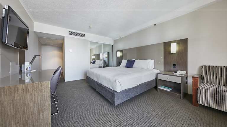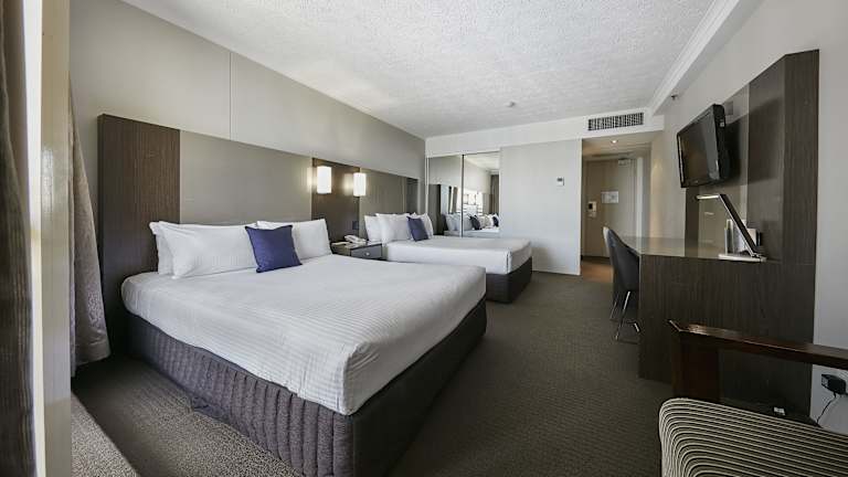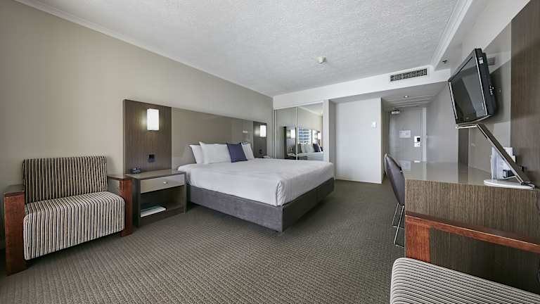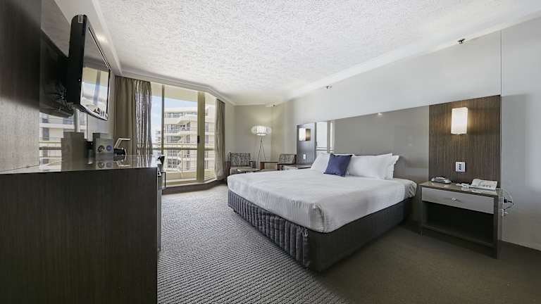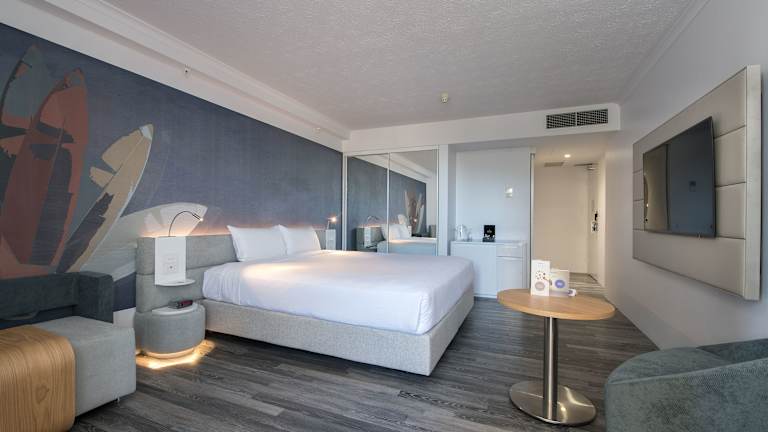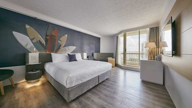 Das Novotel Surfers Paradise bietet insgesamt 401 Zimmer und 3 Suiten auf 36 Etagen. Die Zimmer sind über einen Aufzug erreichbar und verfügen über raumhohe Fenster, Sat-TV, Kaffee- und Teezubehör sowie einen eigenen Balkon oder eine Terrasse mit Meerblick. Einige Zimmer bieten auch eine Whirlpool-Badewanne. Familien mit Kindern profitieren von kostenfreiem Aufenthalt und Frühstück für bis zu 2 Kinder unter 16 Jahren, die im Zimmer der Eltern übernachten.