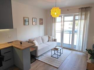 Nowy Apartament Wesoła bietet klimatisierte Übernachtungsmöglichkeiten mit Balkon. Kostenloses WLAN ist ebenfalls verfügbar. Gäste können sowohl Stadt- als auch Gartenblick genießen.