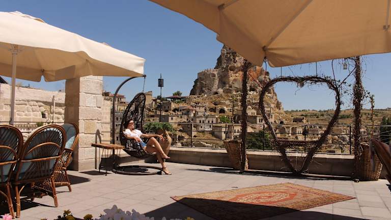 Das Mahzen Cave Hotel in Ortahisar ist eine freundliche Unterkunft, die ihren Gästen eine angenehme Atmosphäre bietet. Das Hotel verfügt über hilfsbereites Personal an der Rezeption und bietet verschiedene Einrichtungen wie eine Gepäckaufbewahrung, einen TV-Raum und eine Raucherzone. WLAN ist in den öffentlichen Bereichen kostenlos verfügbar. Bei Bedarf können Ausflüge über den Tourenschalter gebucht werden. Parkplätze stehen gegen Gebühr zur Verfügung. Jeden Morgen wird ein nahrhaftes Frühstück serviert, das den Gästen einen guten Start in den Tag ermöglicht. Auf der Terrasse können die Gäste das schöne Wetter genießen. Die Zimmer sind mit verschiedenen Annehmlichkeiten ausgestattet und bieten WLAN gegen Gebühr.