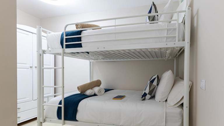 Die Ferienwohnung umfasst zwei Schlafzimmer, ein Wohnzimmer, ein Badezimmer mit Dusche sowie eine gut ausgestattete Küche, die über einen Kühlschrank und Geschirrspüler verfügt. Die Ausstattung beinhaltet einen Flachbild-TV, Handtücher und Bettwäsche. Die Unterkunft bietet zudem einen Balkon und Klimaanlage.