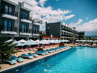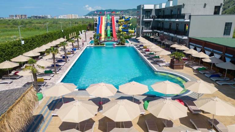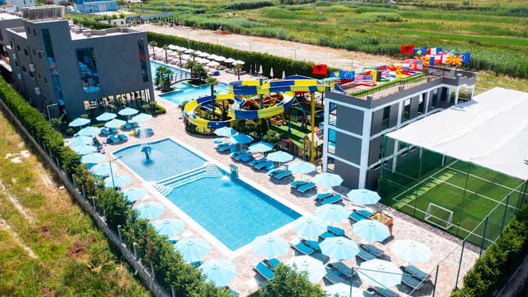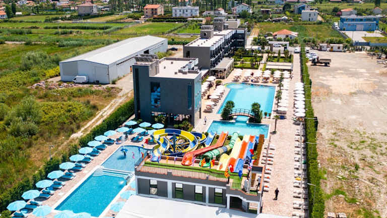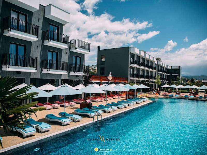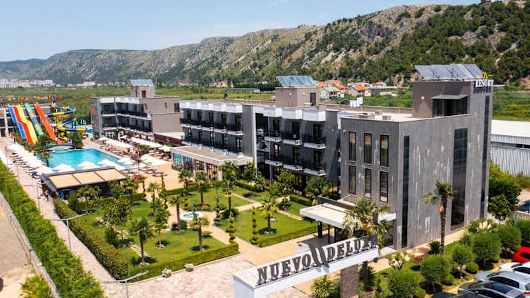 Das Hotel Nuevo Deluxe in Shëngjin bietet eine ideale Unterkunft für Reisende, die eine entspannte und komfortable Atmosphäre suchen. Mit kostenlosen Leihfahrrädern, einem saisonalen Außenpool und einer Gemeinschaftslounge ist für Unterhaltung und Erholung gesorgt. Die Zimmer sind modern und gut ausgestattet und bieten einen schönen Blick auf die Stadt. Das Hotel bietet auch ein Restaurant, einen Wasserpark und eine Terrasse, um den Aufenthalt noch angenehmer zu gestalten.