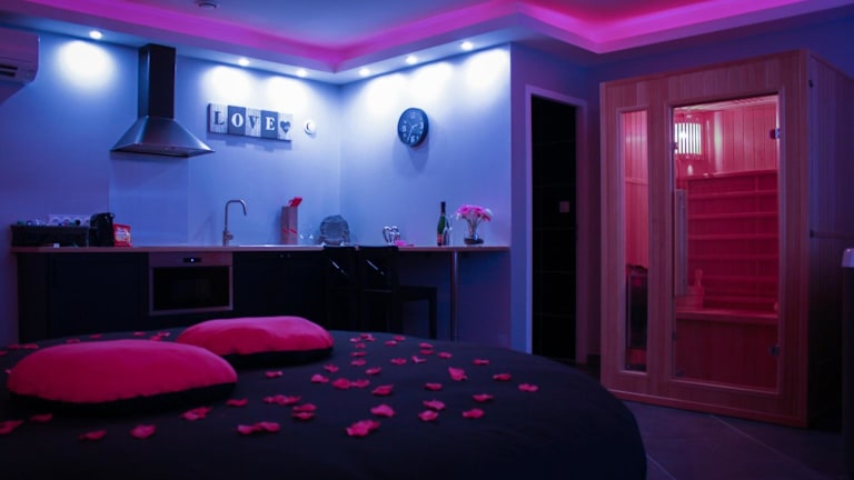 Die Zimmer im Nuit vip spa sauna privatif sind klimatisiert und mit modernen Annehmlichkeiten ausgestattet. Jedes Zimmer verfügt über ein eigenes Bad mit einem Whirlpool und kostenfreien Pflegeprodukten. Ein Flachbild-TV und teilweise eine Terrasse sind ebenfalls vorhanden. Eine Kaffeemaschine und ein Kühlschrank gehören zur Ausstattung aller Zimmer.
