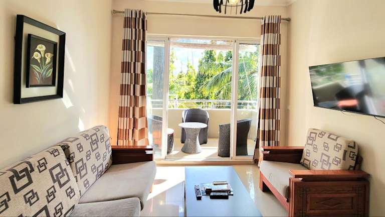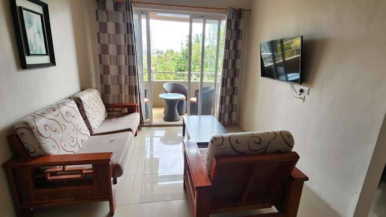Number 7, 2nd floor, Pebble Bay Apartments with Garden View bietet eine Ferienwohnung mit Gartenblick und Balkon sowie kostenlosem Privatparkplatz.