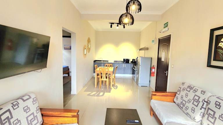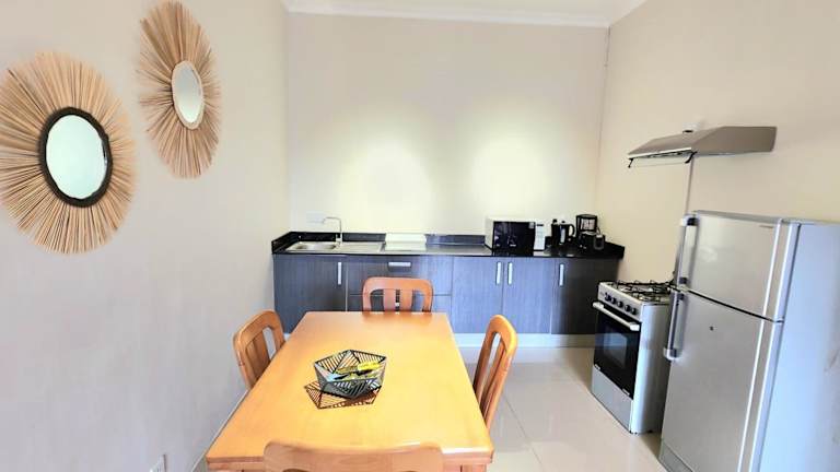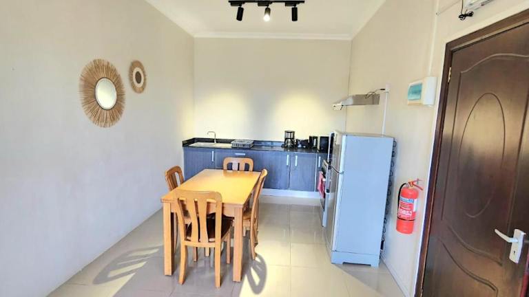 Die Ferienwohnung besteht aus 2 Schlafzimmern und ist mit Klimaanlage, einem Flachbild-TV sowie einer Küche mit Kühlschrank und Ofen ausgestattet. Handtücher und Bettwäsche werden bereitgestellt.