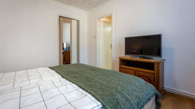 Das Apartment bietet ein Schlafzimmer, ein Wohnzimmer, eine voll ausgestattete Küche und ein Badezimmer mit Dusche und Badewanne. Es verfügt auch über einen Balkon mit Gartenblick, der zum Entspannen einlädt. Handtücher und Bettwäsche werden gestellt, um Ihnen einen angenehmen Aufenthalt zu ermöglichen.