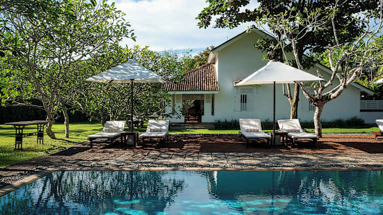 Das Nyne Hotels Rock Villa befindet sich entlang der malerischen Südküste Sri Lankas, etwa 1,1 km vom ruhigen Bentota See entfernt. Die Umgebung ist geprägt von üppigen tropischen Gärten und einem privaten Strandbereich mit direktem Zugang zum Indischen Ozean.