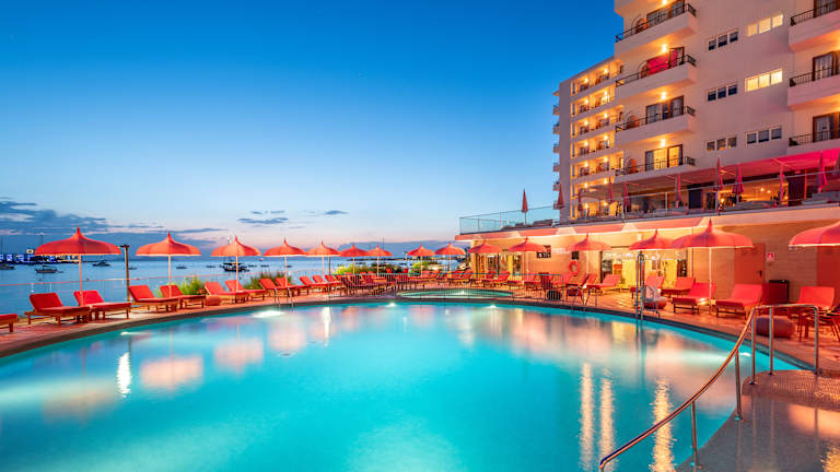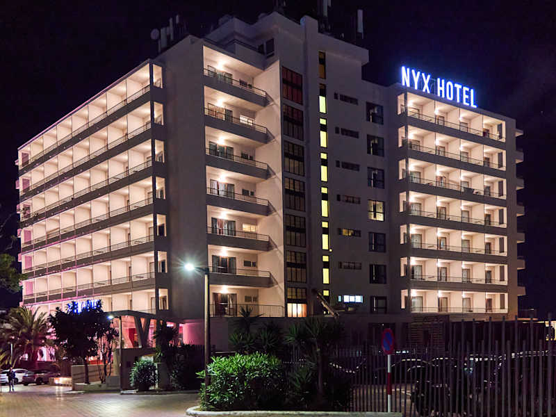 Das NYX Hotel Ibiza - Adults Only liegt mitten in der Bucht von San Antonio. Es kennzeichnet sich als Hotel für Familien und Pärchen mit einem ausgezeichneten Preis- / Leistungsverhältnis und 4-Sterne-Serviceleistungen: Miniklub, Buffetrestaurant mit Terrasse im Freien, Bars, Internet Corner, Animation für alle Altersstufen, Pools, Chill-out-Bar und Terrasse nur für Erwachsene mit beeindruckender Aussicht, Sonnenterrasse und exklusiver Bereich mit Bali-Liegen nur für Erwachsene – und das alles direkt an der Strandpromenade von Es Puet.