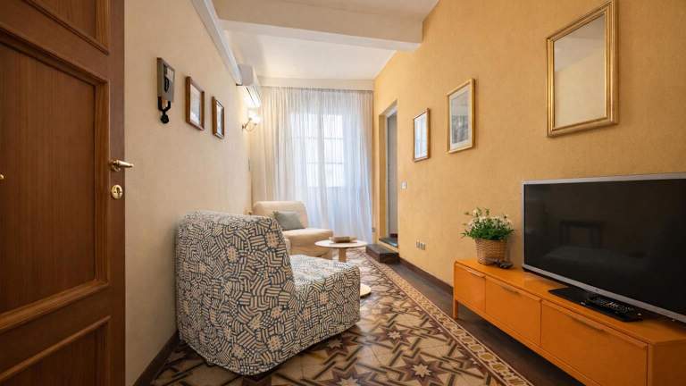 Die Ferienwohnung umfasst 1 Schlafzimmer und ein Wohnzimmer sowie eine voll ausgestattete Küche mit Kühlschrank und Kaffeemaschine. Zudem steht ein Badezimmer mit Bidet und Dusche zur Verfügung. Handtücher und Bettwäsche werden bereitgestellt.
