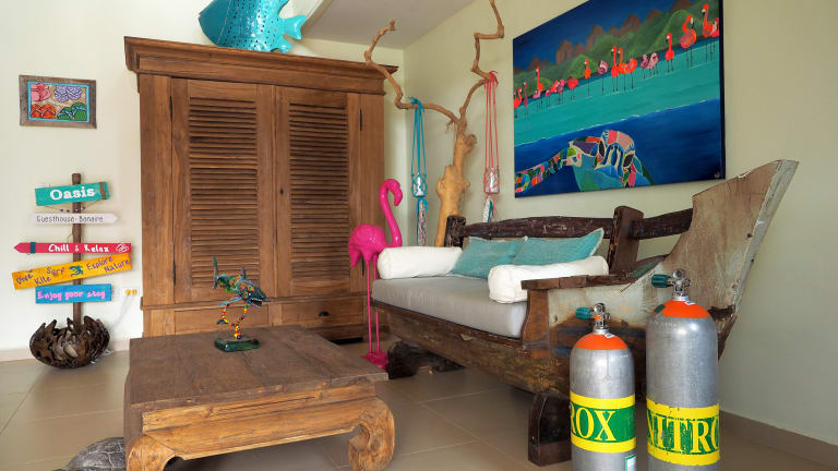 In perfekter Lage, in Belnem, unmittelbar am Meer, der Hauptstad Kralendijk und dem Surfer Paradies „Sorobon“. Für unsere Tauchfreunde befindet sich der Tauchplatz „Bachelors Beach“ nur wenige Minuten zu Fuß entfernt. Die Hauptstad Kralendijk befindet sich nur 5 Autominuten entfernt.
