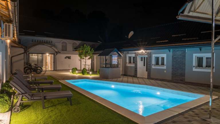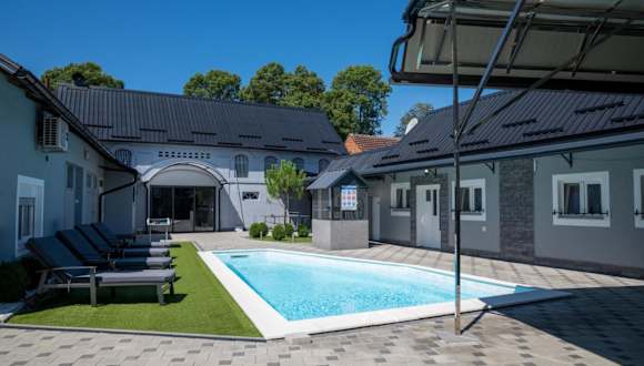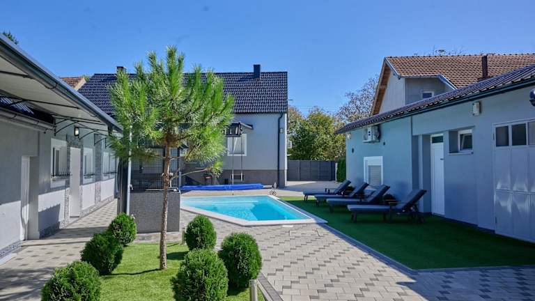 Die Unterkunft Oaza Mira LAZE befindet sich in Nova Gradiška und bietet eine ruhige Umgebung mit Blick auf den Garten und den Pool.