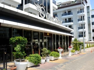 Das Oba Star Hotel liegt in Alanya, weniger als 100 m von einem eigenen Sandstrand entfernt. Es ist auch nur 2 km vom Stadtzentrum entfernt und bietet eine gute Anbindung an Einkaufsmöglichkeiten und Restaurants. Die Burg von Alanya ist nur 6 km entfernt und kann leicht erreicht werden. Die Lage des Hotels bietet auch einen atemberaubenden Panoramablick auf das Eisacktal.