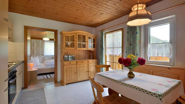 Die Zimmer in der Unterkunft Obereinschneithof verfügen über einen Balkon mit Bergblick, einen Sitzbereich und einen Satelliten Flachbild-TV. Eine voll ausgestattete Küche mit Kühlschrank, Herdplatte, Toaster, Kaffeemaschine und Wasserkocher ist ebenfalls vorhanden. Jedes Zimmer bietet ein eigenes Badezimmer mit einer Dusche und einem Haartrockner.