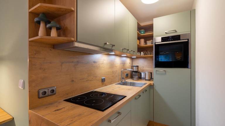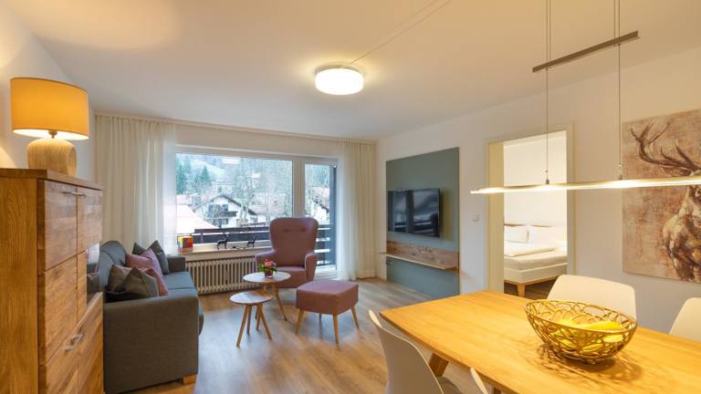 Die Ferienwohnung umfasst ein Schlafzimmer, ein Wohnzimmer, ein Badezimmer mit Dusche, eine gut ausgestattete Küche mit Kühlschrank und Geschirrspüler sowie einen Balkon mit Bergblick. Zur Ausstattung gehören Handtücher, Bettwäsche und ein Flachbild-TV. Die Unterkunft bietet Nichtraucherzimmer und ist mit Gartenmöbeln ausgestattet.