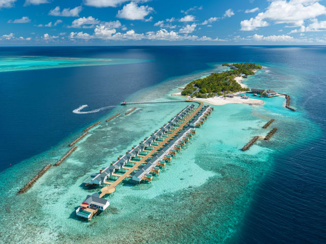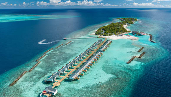 -All Inclusive: Frühstück (Buffet), Mittagessen (Buffet), Abendessen (Buffet), Getränke kostenfrei (Softdrinks, Mineralwasser, Kaffee/Tee, Bier, Säfte, Mocktails, Hauswein, Cocktails, Sekt, Spirituosen, 9-1 Uhr), Snacks, Minibar (Auffüllung täglich, Softdrinks, Mineralwasser, Bier), ab 4 Nächten Aufenthalt 1 Abendessen in einem der beiden à-la-carte-Restaurants, ab 8 Nächten Aufenthalt 2 Abendessen und ab 14 Nächten Aufenthalt 3 Abendessen im à-la-carte-Restaurant, 2 Bootsausflüge pro Gast/Aufenthalt (traditionelles Angeln am Morgen und Dhoni-Fahrt zum Sonnenuntergang) -stylisches Bistro mit fantastischem Ausblick - Buffet-Hauptrestaurant mit Live-Cooking-Station und À-la-carte-Beachgrill-Restaurant