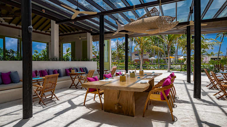 Die Unterkunft OBLU XPERIENCE Ailafushi bietet Übernachtungsmöglichkeiten und umfasst Annehmlichkeiten wie einen Außenpool, ein Fitnesscenter und einen Garten. Zudem stehen eine Terrasse und eine Bar zur Verfügung.