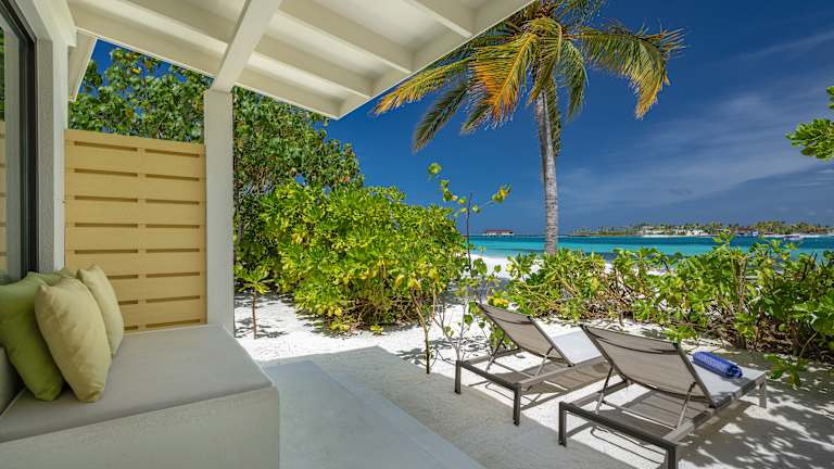 Die Unterkunft OBLU XPERIENCE Ailafushi - All Inclusive with Free Transfers befindet sich in Malé mit Blick auf den Strand und bietet eine malerische Umgebung.