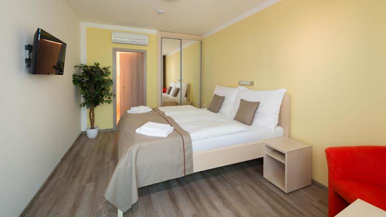 In der Umgebung des Hotels gibt es verschiedene Freizeitmöglichkeiten, darunter Wandern und Radfahren. Erkunden Sie die malerische Landschaft rund um Velké Meziříčí oder nutzen Sie die Nähe zu größeren Städten wie Brünn und Jihlava, um kulturelle Sehenswürdigkeiten zu besichtigen. Das freundliche Personal des Hotels steht Ihnen gerne bei der Organisation von Aktivitäten und Ausflügen zur Verfügung.