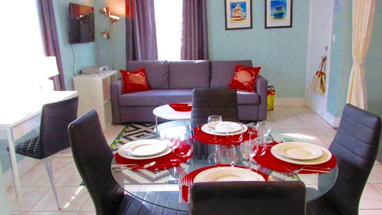 Das Apartment im Ocean Breeze bietet Ihnen einen komfortablen Aufenthalt mit einer voll ausgestatteten Küche, in der Sie Ihre eigenen Mahlzeiten zubereiten können. Der Sitzbereich verfügt über ein Schlafsofa, auf dem Sie entspannen können, und der Flachbild-TV sorgt für Unterhaltung. Kostenfreies WLAN ist im gesamten Apartment verfügbar. Darüber hinaus stehen Ihnen ein Esstisch und kostenfreie Pflegeprodukte zur Verfügung.