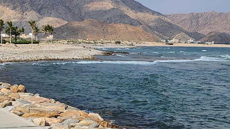 Ocean crescent As sifah bietet Übernachtungsmöglichkeiten mit einem eigenen Strandbereich, einer Terrasse und einer Bar. Die Unterkunft ermöglicht einen Blick auf das Meer, die Berge sowie den Pool. Kostenfreies WLAN steht zur Verfügung.