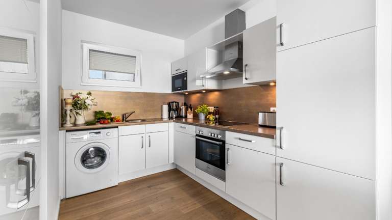 Diese Ferienwohnung bietet zwei Schlafzimmer sowie eine voll ausgestattete Küche mit Kühlschrank und Geschirrspüler. Das Badezimmer verfügt über eine Dusche, einen Haartrockner und eine Waschmaschine. Ein Fernseher ist ebenfalls vorhanden. Haustiere sind erlaubt, möglicherweise fallen jedoch Gebühren an.
