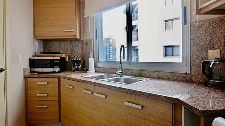 Die Ferienwohnung ist klimatisiert und besteht aus zwei Schlafzimmern, einem Wohnzimmer sowie einer voll ausgestatteten Küche, die einen Kühlschrank und eine Kaffeemaschine beinhaltet. Es gibt zudem zwei Badezimmer mit Dusche und Haartrockner. Handtücher und Bettwäsche werden bereitgestellt.