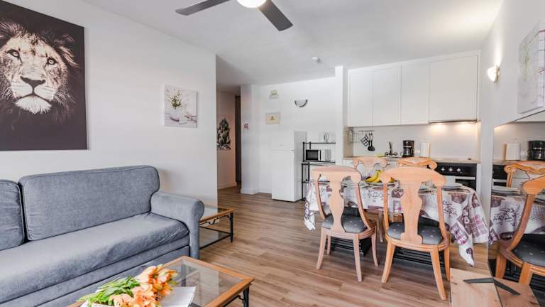Die Ferienwohnung verfügt über 2 Schlafzimmer, eine Küche mit Kühlschrank und Ofen, einen Flachbild-TV und einen Sitzbereich. Das Badezimmer ist mit einer Dusche ausgestattet. Handtücher und Bettwäsche werden bereitgestellt. Die Zimmer sind Nichtraucherzimmer und es stehen Familienzimmer zur Verfügung.