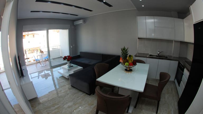 Das Golden Beach Residence - Front Beach Luxury Apartment befindet sich in Saranda, nur 500 m vom Maestral Strand und 800 m vom VIP-Strand entfernt. Der Strand Santa Quaranta ist ebenfalls nur 800 m entfernt. Die Lage des Hotels ermöglicht es Ihnen, die Schönheit der Küste zu genießen und verschiedene Aktivitäten wie Angeln in der Nähe zu unternehmen. Der Nationalpark Butrint ist 14 km entfernt und das antike Fanoti erreichen Sie nach 48 km. Der nächstgelegene Flughafen ist der Flughafen Ioannina, der 96 km entfernt liegt.