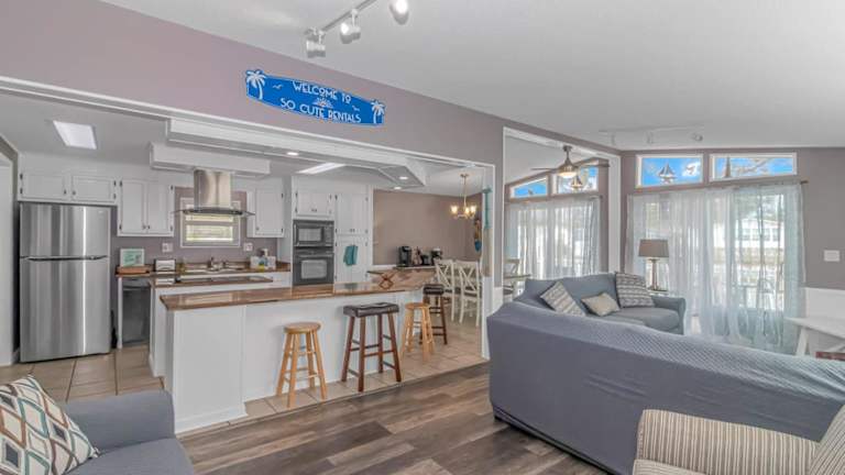 Das Ferienhaus ist klimatisiert und umfasst 2 Schlafzimmer. Zur Ausstattung gehören Kabel-TV, eine voll ausgestattete Küche mit Kühlschrank und Geschirrspüler sowie Handtücher und Bettwäsche.