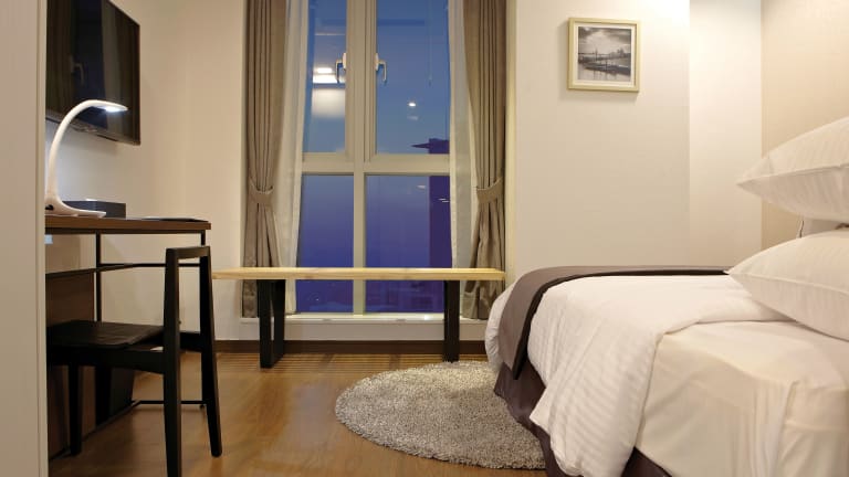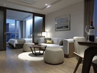 Die Zimmer im Ocloud Hotel Gangnam sind schallisoliert und bieten einen beeindruckenden Stadtblick durch raumhohe Fenster. Sie verfügen über Holzböden, einen Flachbild-TV, einen Safe, einen Kühlschrank und kostenfreie Pflegeprodukte. Bademäntel sind ebenfalls vorhanden, um den Gästen zusätzlichen Komfort zu bieten.