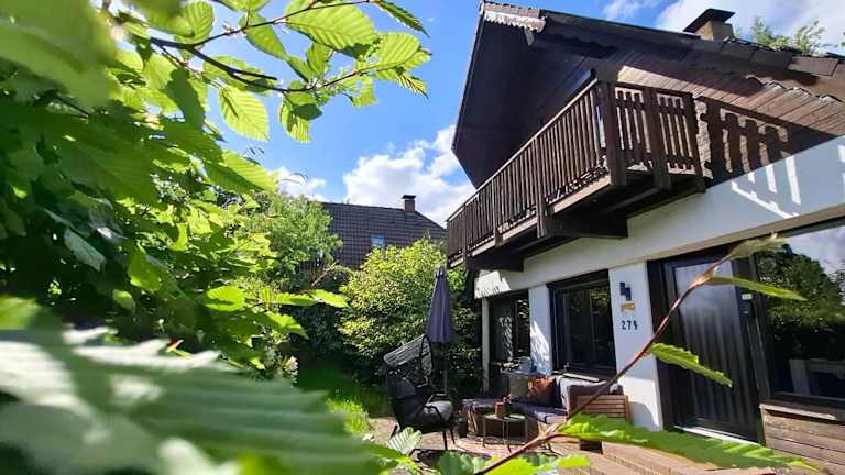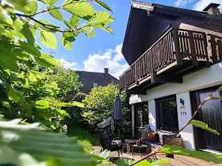 Das Ferienhaus verfügt über zwei Schlafzimmer, ein Wohnzimmer mit Flachbild-TV sowie eine gut ausgestattete Küche, die mit Kühlschrank, Geschirrspüler und allen notwendigen Utensilien ausgestattet ist. Außerdem stehen den Gästen ein Badezimmer mit Dusche, Handtücher und Bettwäsche zur Verfügung. Ein Balkon ergänzt die Wohneinheit und bietet einen Blick auf die schöne Gartenlandschaft.