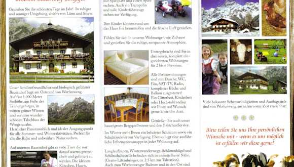 Das Örglgut liegt in der idyllischen Region Werfenweng, nur 16 km von der beeindruckenden Eisriesenwelt Werfen entfernt. Die Umgebung bietet eine Vielzahl von Outdoor-Aktivitäten und ist ein Paradies für Naturliebhaber. Von hier aus können Sie wunderschöne Wanderwege erkunden oder im Winter auf den Pisten Ski fahren. Der Flughafen Salzburg ist etwa 55 km entfernt.