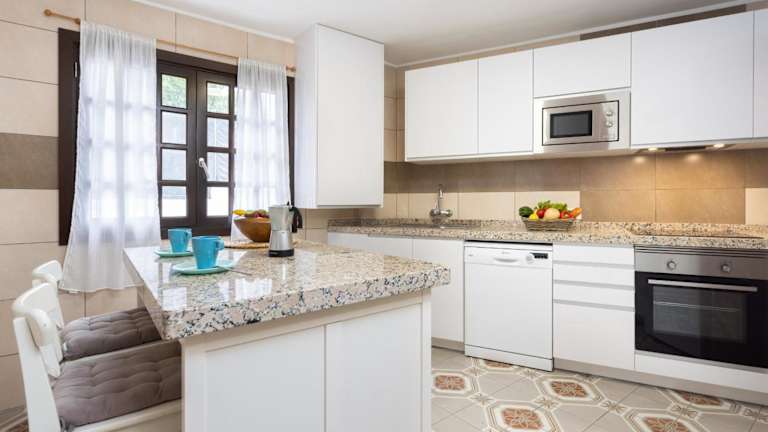 Die Ferienwohnung verfügt über 2 Schlafzimmer, 1 Badezimmer, Bettwäsche, Handtücher, einen TV sowie eine voll ausgestattete Küche. Zudem gibt es eine Terrasse mit Meerblick.